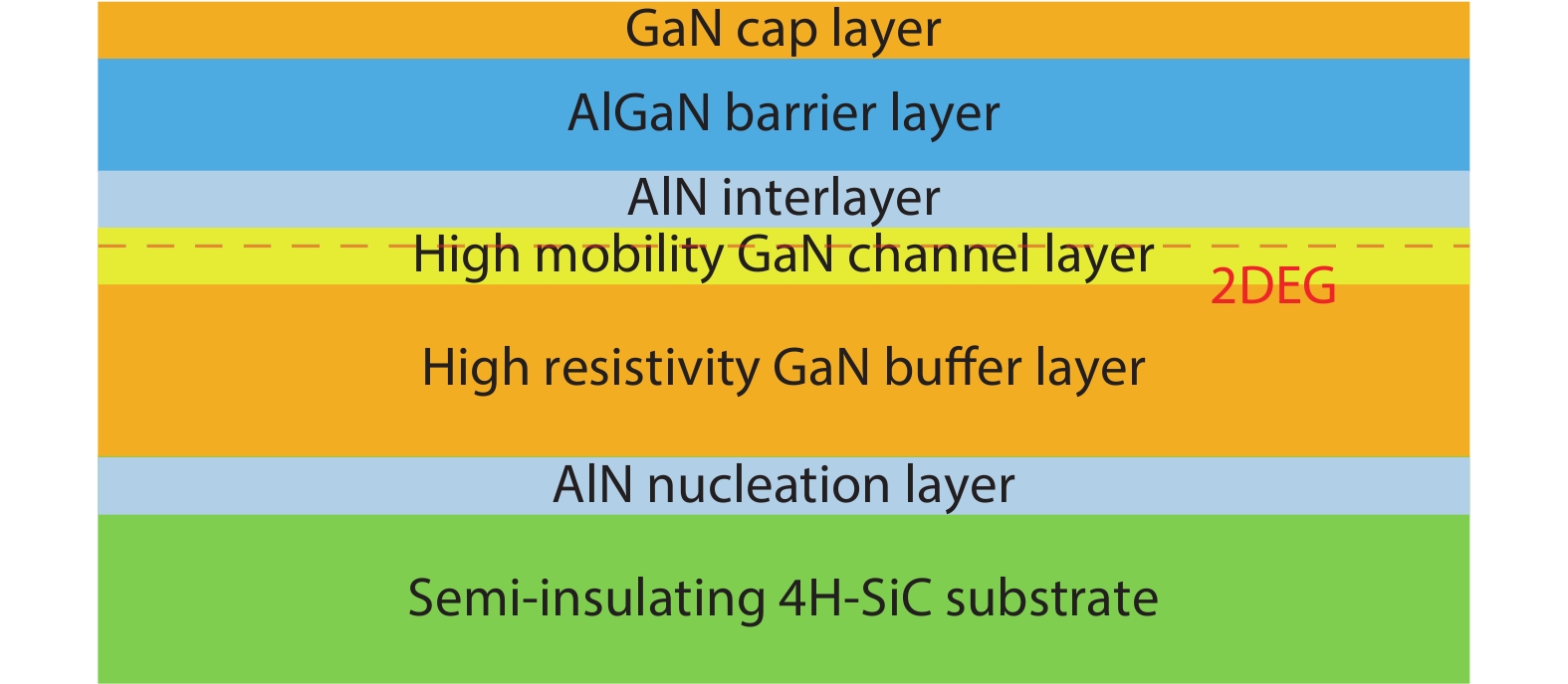| 3 | GaN | High mobility channel layer | 100 | 1050 |