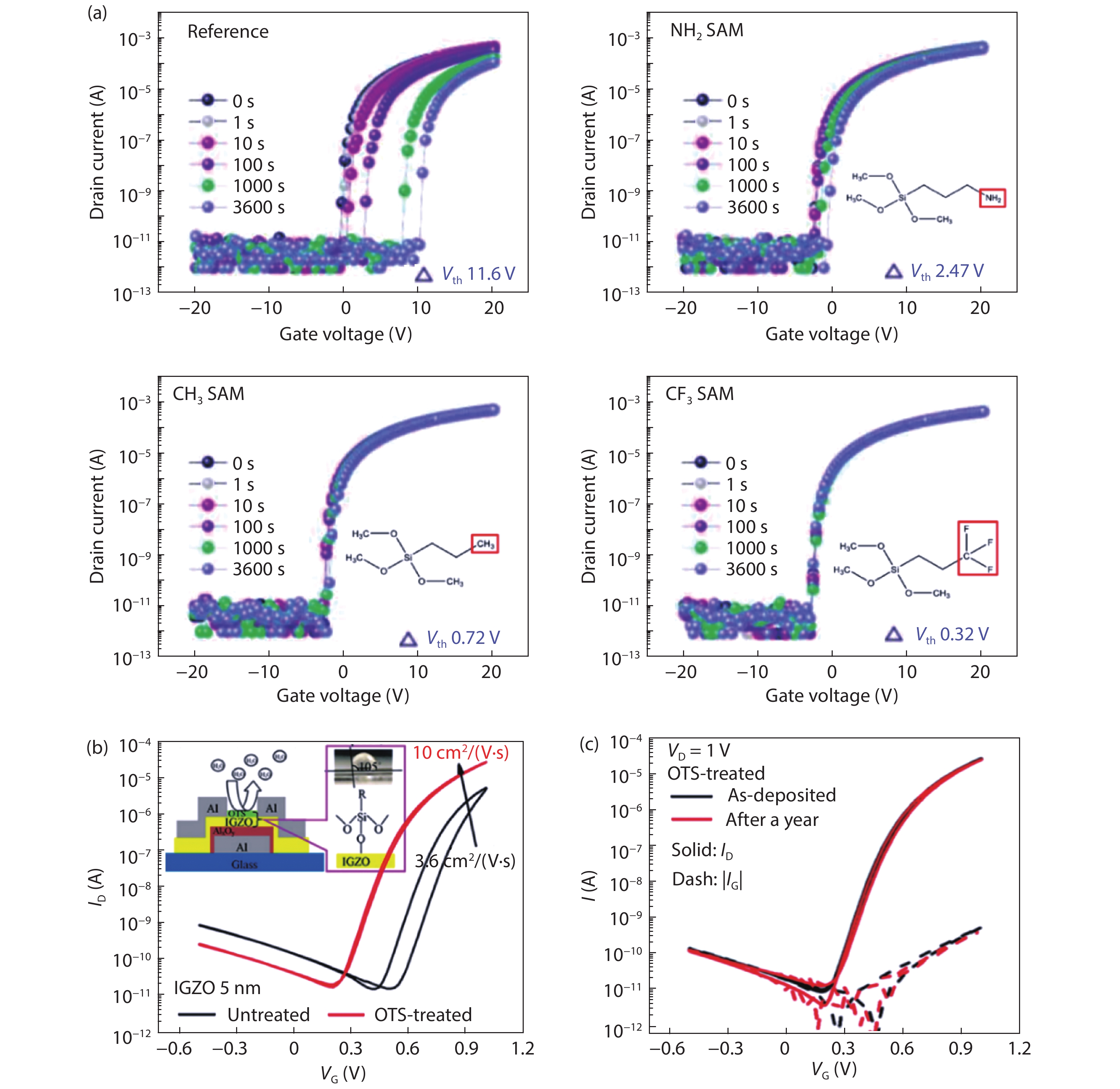Cai W, Wilson J, Zhang J, et al. Significant performance enhancement of very thin InGaZnO thin-film transistors by a self-assembled monolayer treatment. ACS Appl Electron Mater, 2020, 2, 301 doi: 10.1021/acsaelm.9b00791