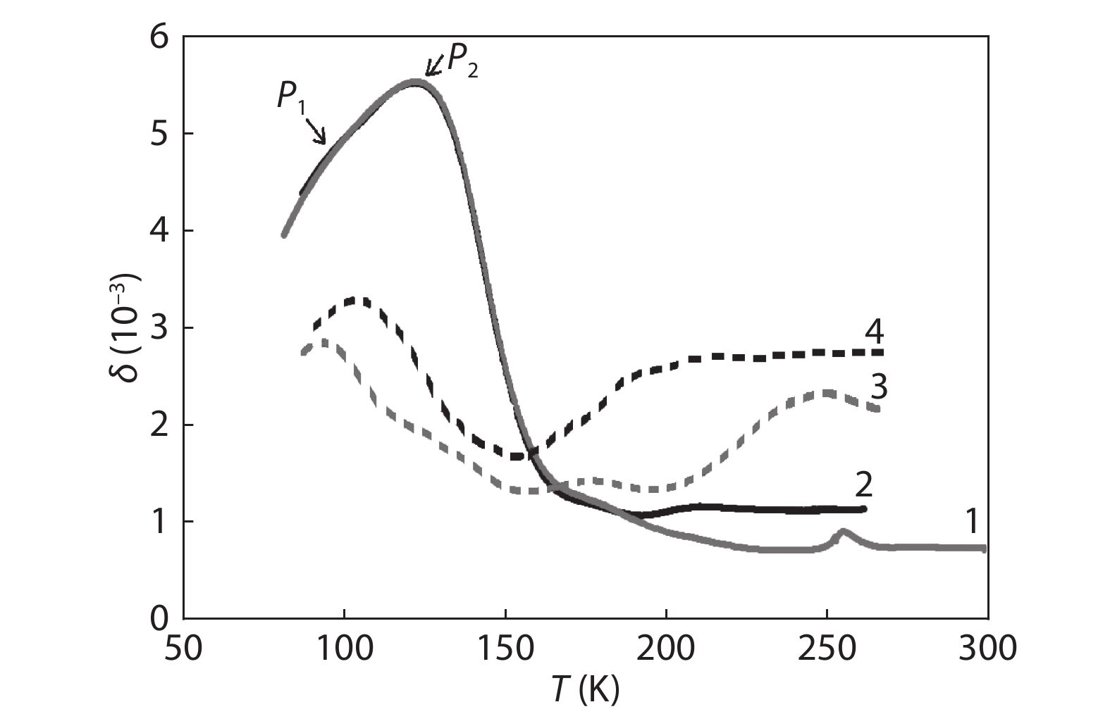 Abstract: In this paper, the dependencies of Young's modulus and attenuation decrement on samarium sulfide polycrystals (SmS) under various annealing temperatures are studied by the piezoelectric ultrasonic composite oscillator technique at a frequency of 100 kHz in the temperature range of 80–300 K. A decrease in Young's modulus with an increase of the annealing temperature due to the texturing of the material was revealed. At the same time, attenuation peaks were observed at temperatures about 90 and 125 K, presumably due to Niblett-Wilks and Bordoni relaxations.
