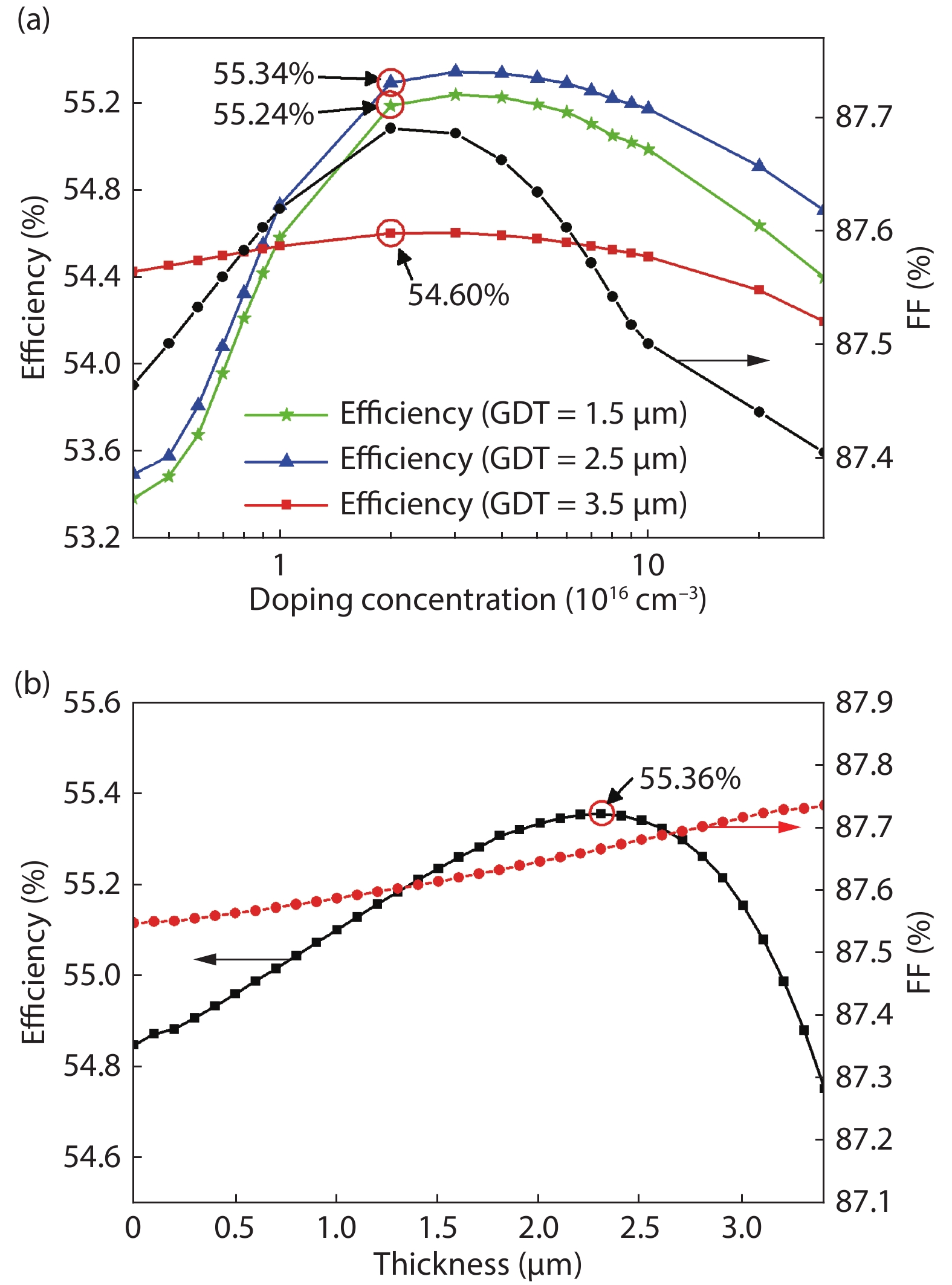 Zhao Y, Liang P, Ren H, et al. Enhanced efficiency in 808 nm GaAs laser power converters via gradient doping. AIP Adv, 2019, 9(10), 105206 doi: 10.1063/1.5109133