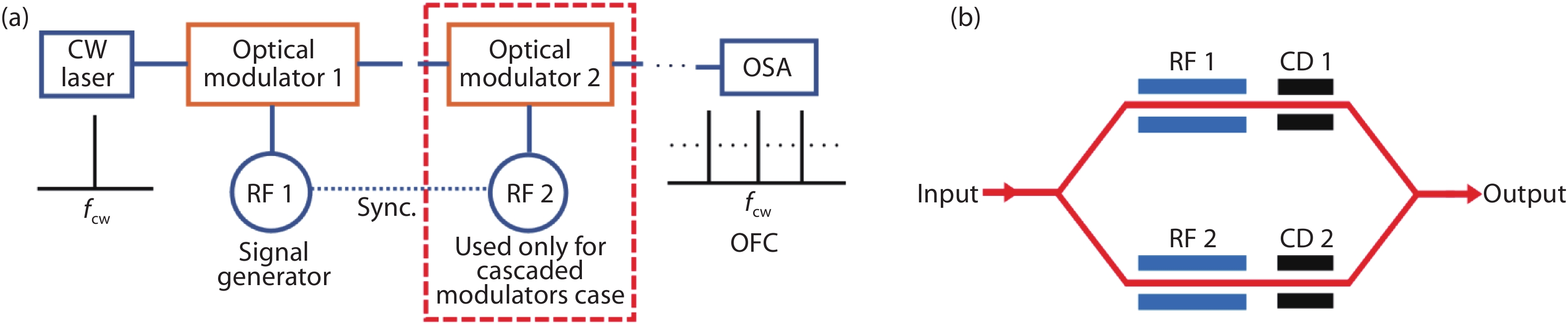 Wu R, Supradeepa V R, Long C M, et al. Generation of very flat optical frequency combs from continuous-wave lasers using cascaded intensity and phase modulators driven by tailored radio frequency waveforms. Opt Lett, 2010, 35, 3234 doi: 10.1364/OL.35.003234