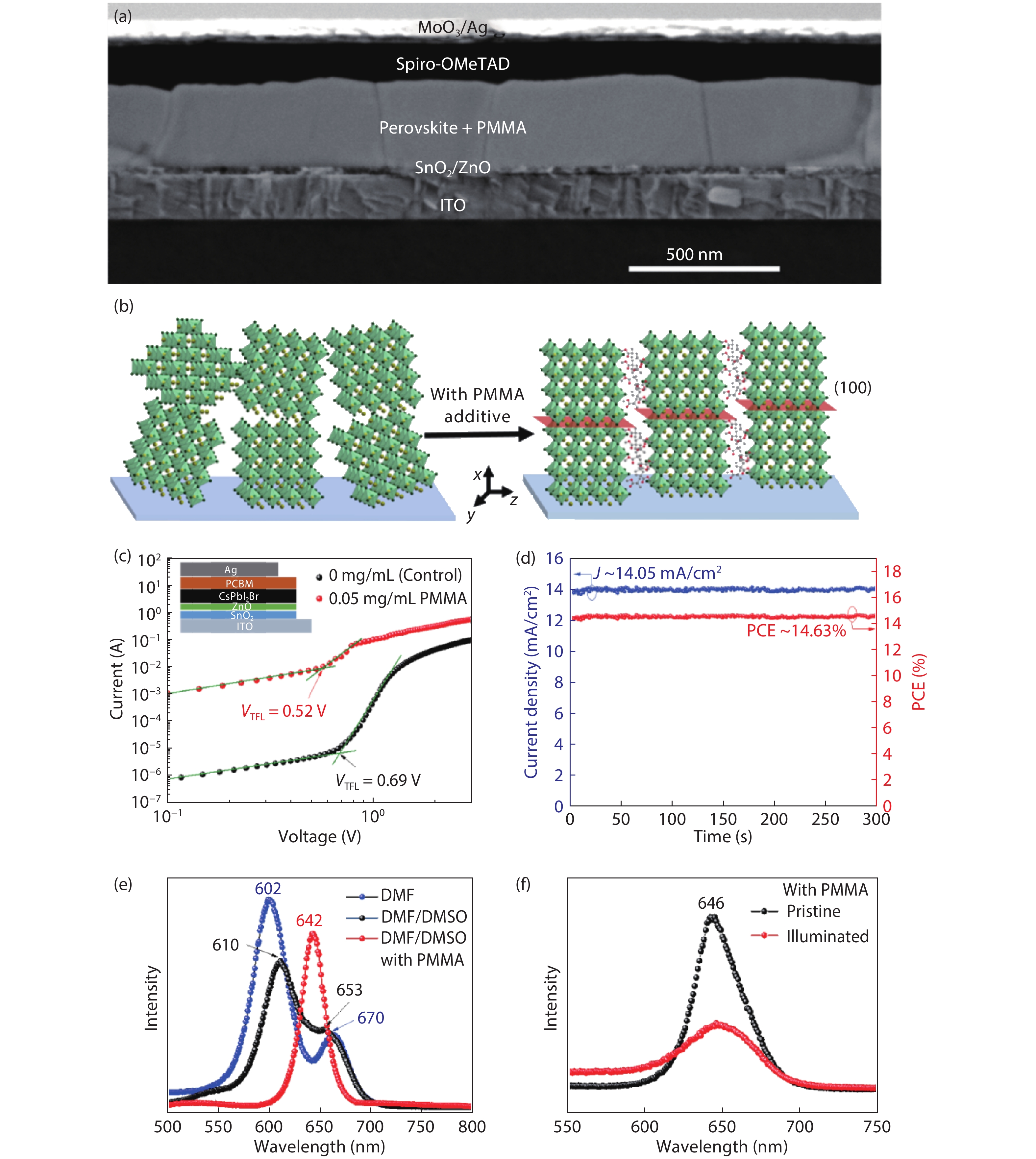 Yanbo Shang, Zhimin Fang, Wanpei Hu, Chuantian Zuo, Bairu Li, Xingcheng Li, Mingtai Wang, Liming Ding, Shangfeng Yang. Efficient and photostable CsPbI2Br solar cells realized by adding PMMA[J]. Journal of Semiconductors, 2021, 42(5): 050501. doi: 10.1088/1674-4926/42/5/050501