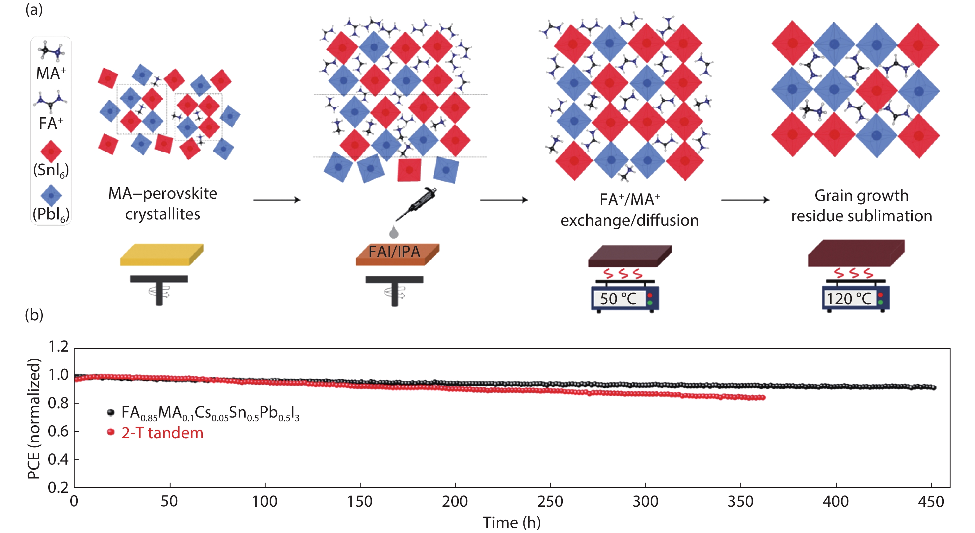 Lin R, Xiao K, Qin Z, et al. Monolithic all-perovskite tandem solar cells with 24.8% efficiency exploiting comproportionation to suppress Sn(II) oxidation in precursor ink. Nat Energy, 2019, 4, 864 doi: 10.1038/s41560-019-0466-3