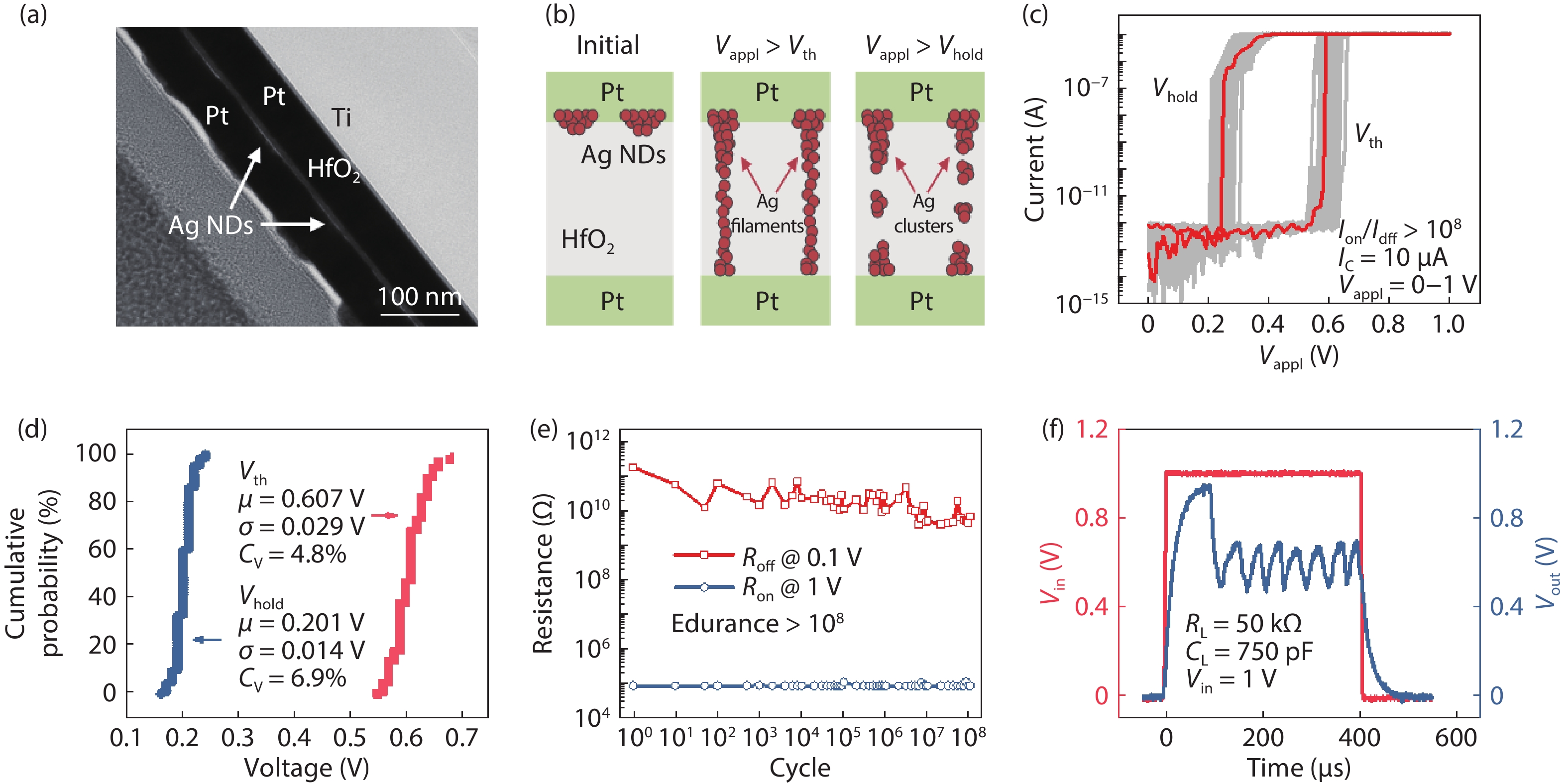 Key words: threshold switching, Ag nanodots, oscillation neuron, neuromorphic computing
