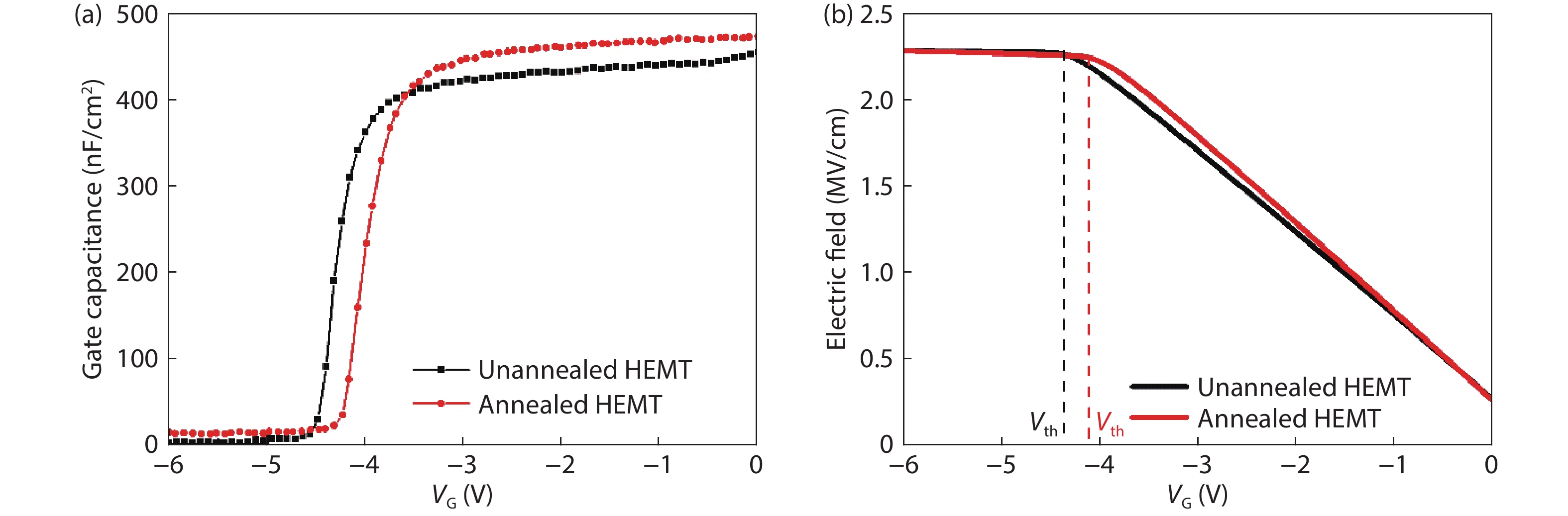 Abstract: In this paper, we investigated the effect of post-gate annealing (PGA) on reverse gate leakage and the reverse bias reliability of Al0.23Ga0.77N/GaN high electron mobility transistors (HEMTs). We found that the Poole–Frenkel (PF) emission is dominant in the reverse gate leakage current at the low reverse bias region (Vth < VG < 0 V) for the unannealed and annealed HEMTs. The emission barrier height of HEMT is increased from 0.139 to 0.256 eV after the PGA process, which results in a reduction of the reverse leakage current by more than one order. Besides, the reverse step stress was conducted to study the gate reliability of both HEMTs. After the stress, the unannealed HEMT shows a higher reverse leakage current due to the permanent damage of the Schottky gate. In contrast, the annealed HEMT shows a little change in reverse leakage current. This indicates that the PGA can reduce the reverse gate leakage and improve the gate reliability.