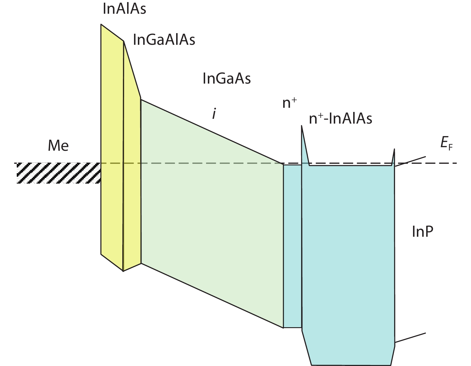 Table 1. InAlAs/InGaAs heteroepitaxial structure of the Schottky barrier high-power microwave photodiode.