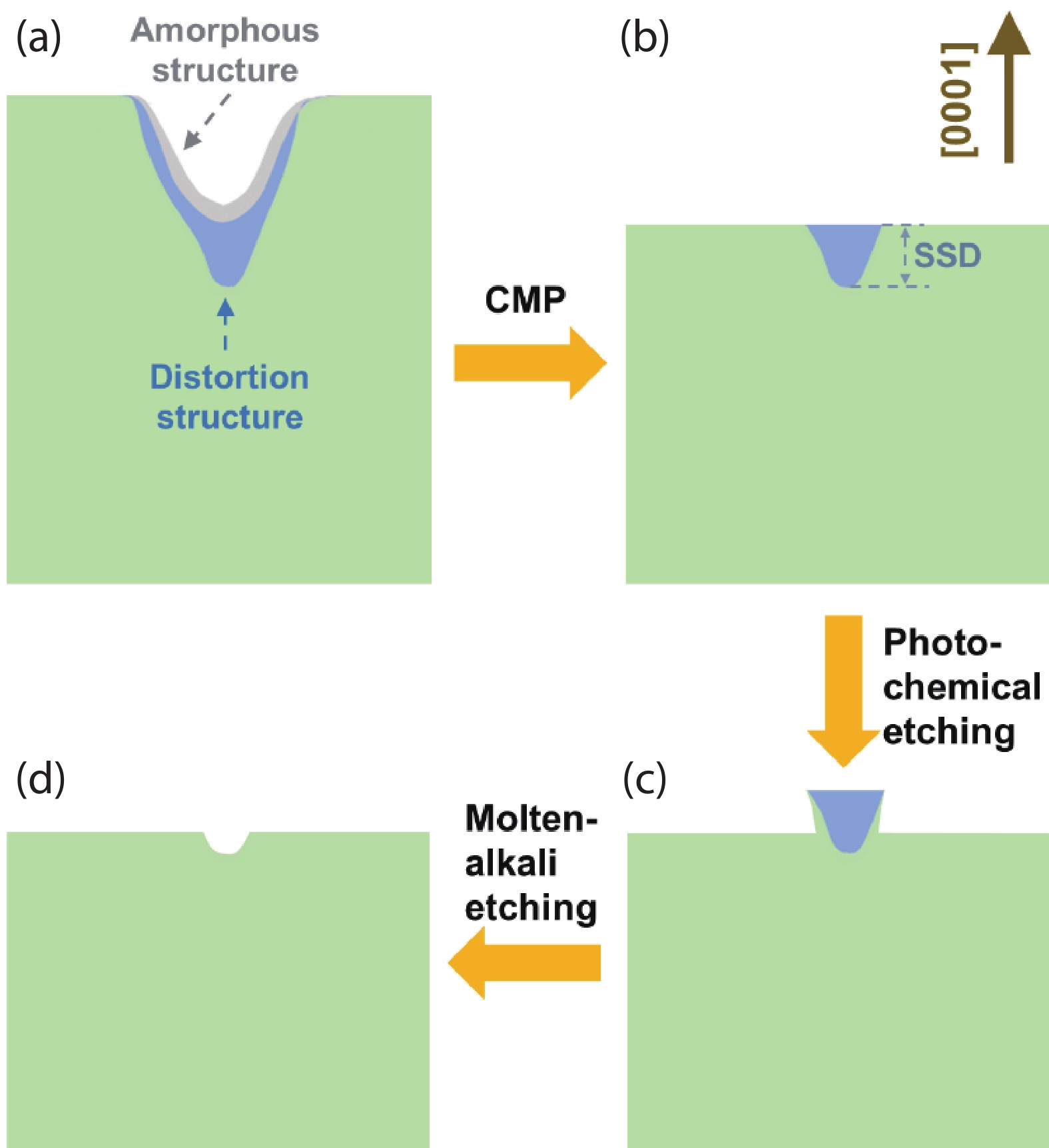 Key words: 4H-SiC, subsurface damages, photo-chemical etching, molten-alkali etching