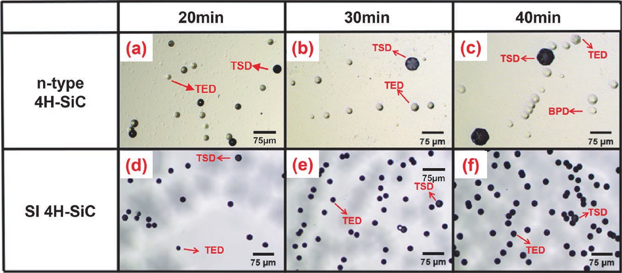 Cui Y X, Hu X B, Xie X J, et al. Threading dislocation classification for 4H-SiC substrates using the KOH etching method. CrystEngComm, 2018, 20, 978 doi: 10.1039/C7CE01855J