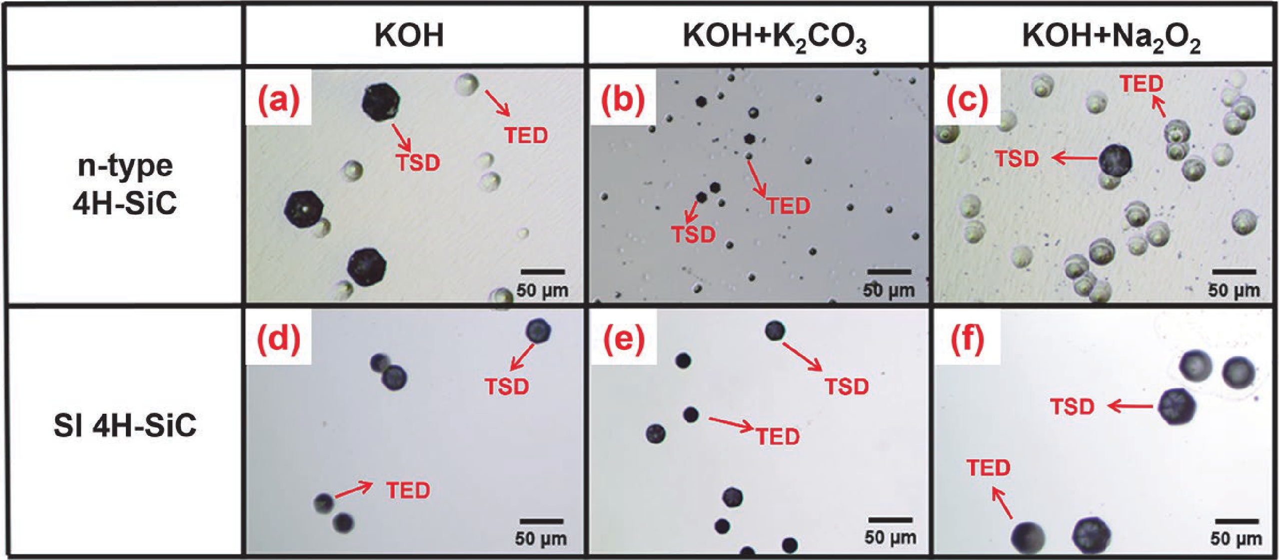 Dong L, Zheng L, Liu X F, et al. Defect revelation and evaluation of 4H silicon carbide by optimized molten KOH etching method. Mater Sci Forum, 2013, 740, 243 doi: 10.4028/www.scientific.net/MSF.740-742.243