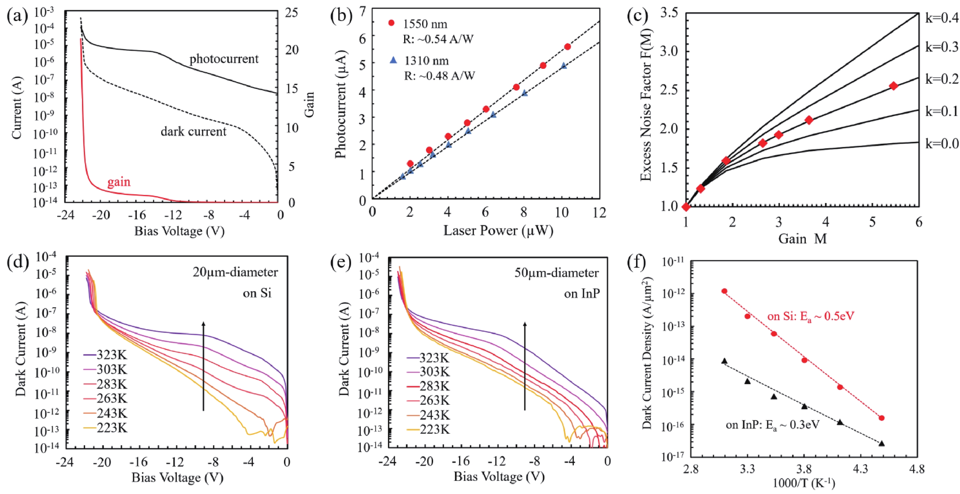 Chen B L, Wan Y T, Xie Z Y, et al. Low dark current high gain InAs quantum dot avalanche photodiodes monolithically grown on Si. ACS Photonics, 2020, 7, 528 doi: 10.1021/acsphotonics.9b01709