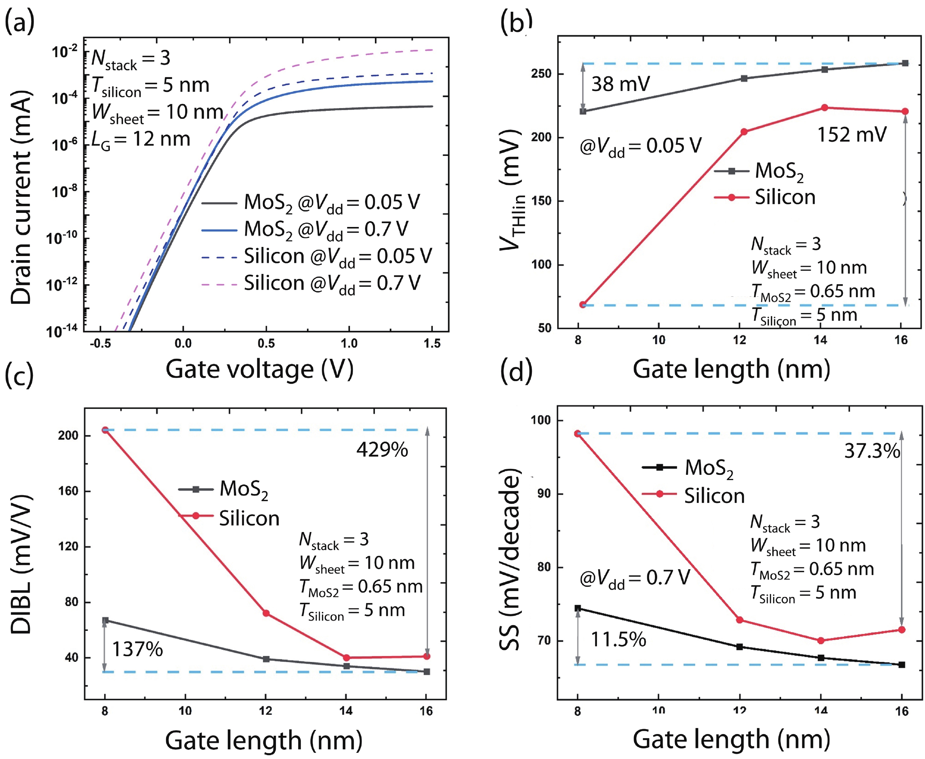 Key words: MoS2, stacked nanosheet GAA, TCAD simulation