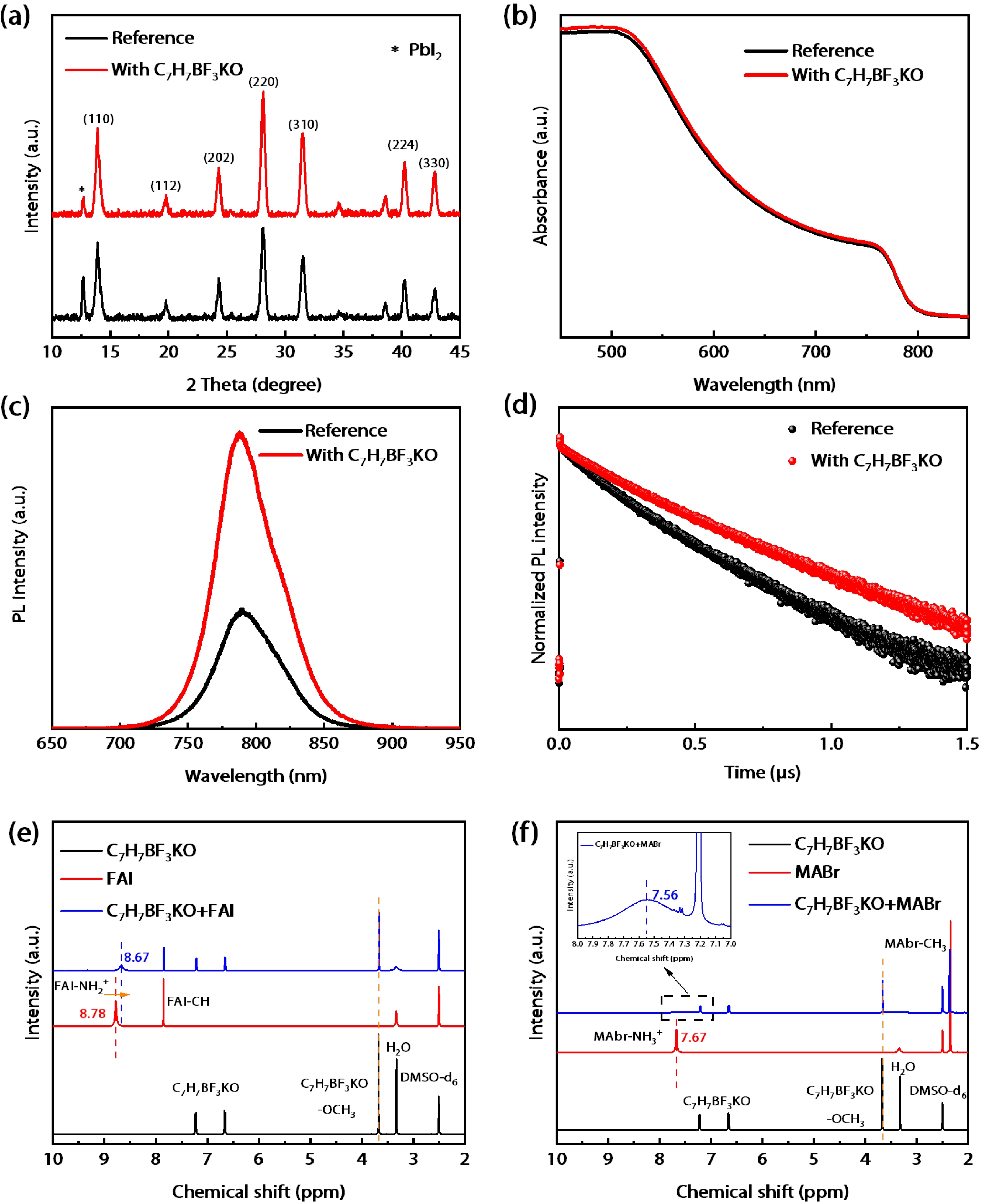 Table 1. The fitting parameters of TRPL for reference and C7H7BF3KO based spray-coated perovskite films.