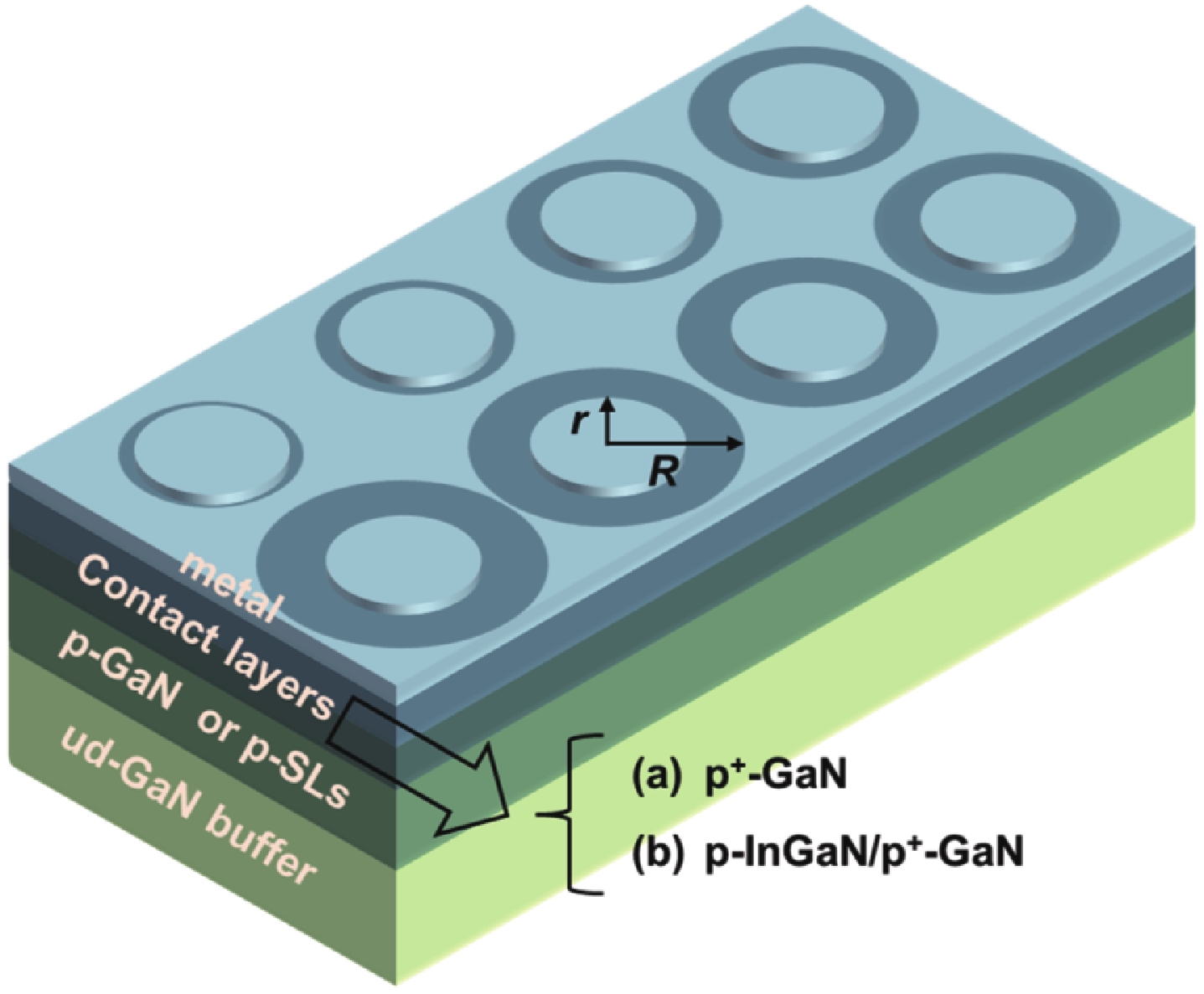 Weimar A, Lell A, Brüderl G, et al. Investigation of low-resistance metal contacts on p-type GaN using the linear and circular transmission line method. Phys Status Solidi A, 2001, 183, 169 doi: 10.1002/1521-396X(200101)183:1<169::AID-PSSA169>3.0.CO;2-D