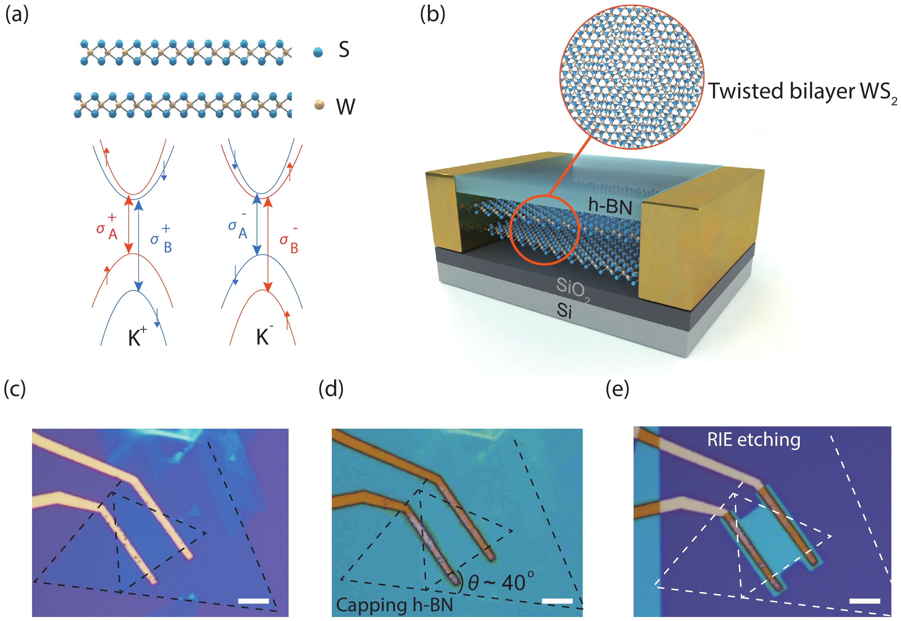 Abstract: The emerging two-dimensional materials, particularly transition metal dichalcogenides (TMDs), are known to exhibit valley degree of freedom with long valley lifetime, which hold great promises in the implementation of valleytronic devices. Especially, light–valley interactions have attracted attentions in these systems, as the electrical generation of valley magnetization can be readily achieved — a rather different route toward magnetoelectric (ME) effect as compared to that from conventional electron spins. However, so far, the moiré patterns constructed with twisted bilayer TMDs remain largely unexplored in regard of their valley spin polarizations, even though the symmetry might be distinct from the AB stacked bilayer TMDs. Here, we study the valley Hall effect (VHE) in 40°-twisted chemical vapor deposition (CVD) grown WS2 moiré transistors, using optical Kerr rotation measurements at 20 K. We observe a clear gate tunable spatial distribution of the valley carrier imbalance induced by the VHE when a current is exerted in the system.