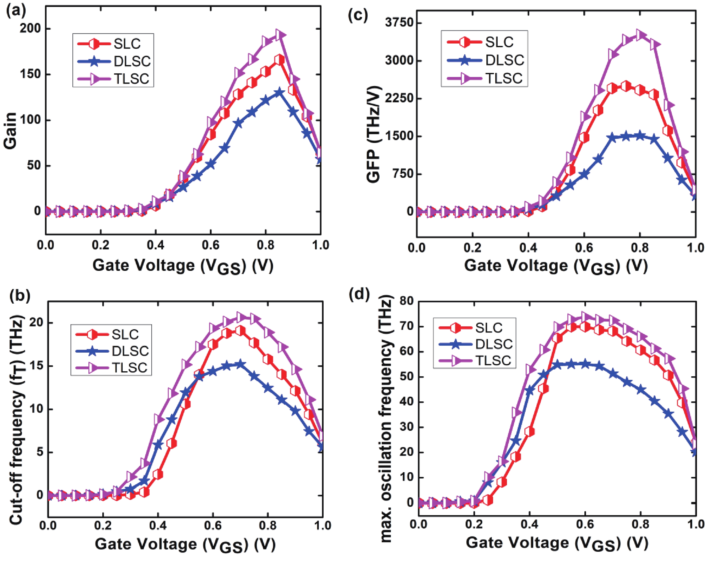 Table 3. RF and analog parameter comparison of different structures at 20 nm gate length.