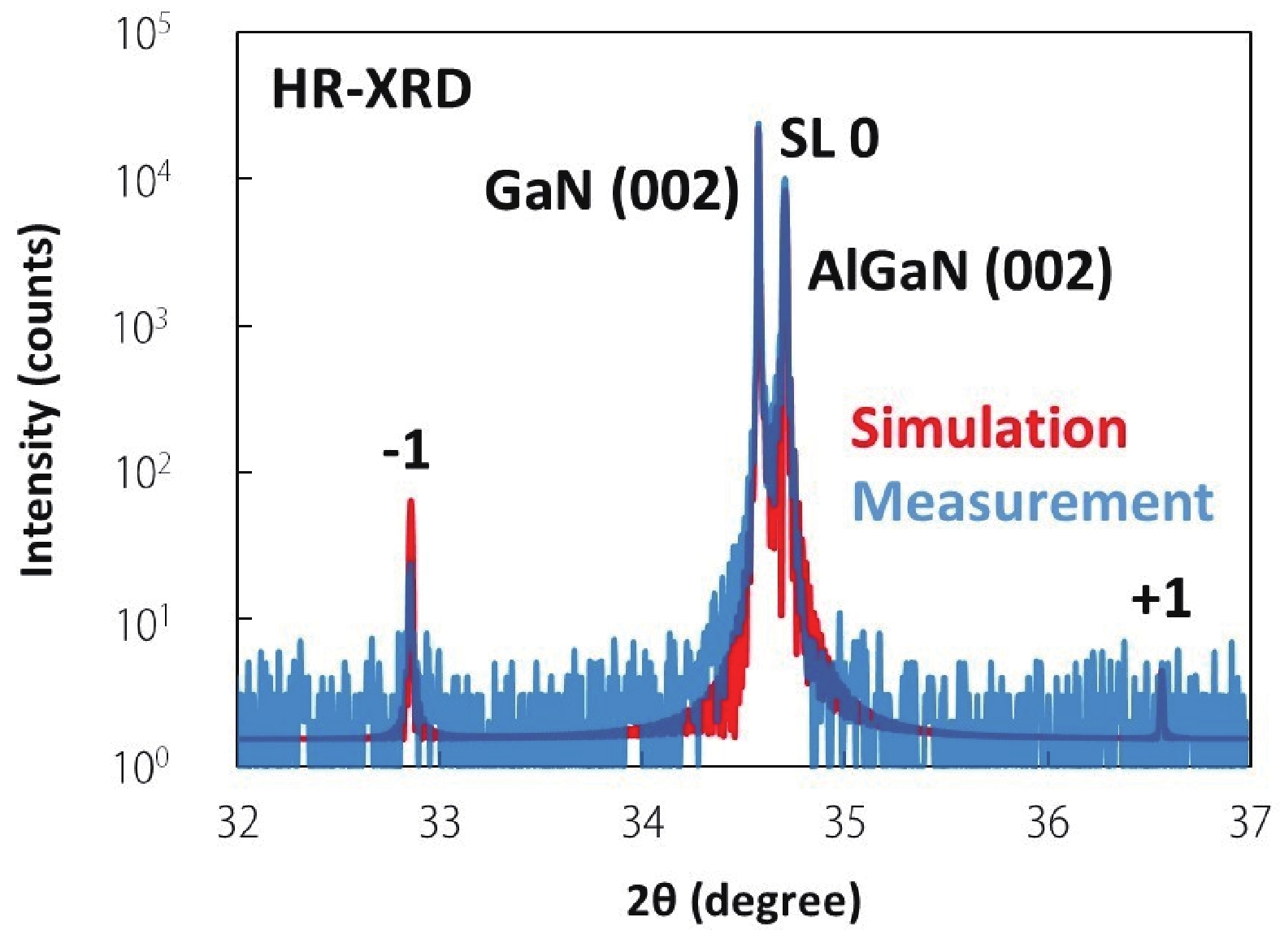 Fig. 7.  (Color online) The 2theta/omega scan of p-AlGaN/GaN SLs by HR-XRD (Bruker D8 Discover).