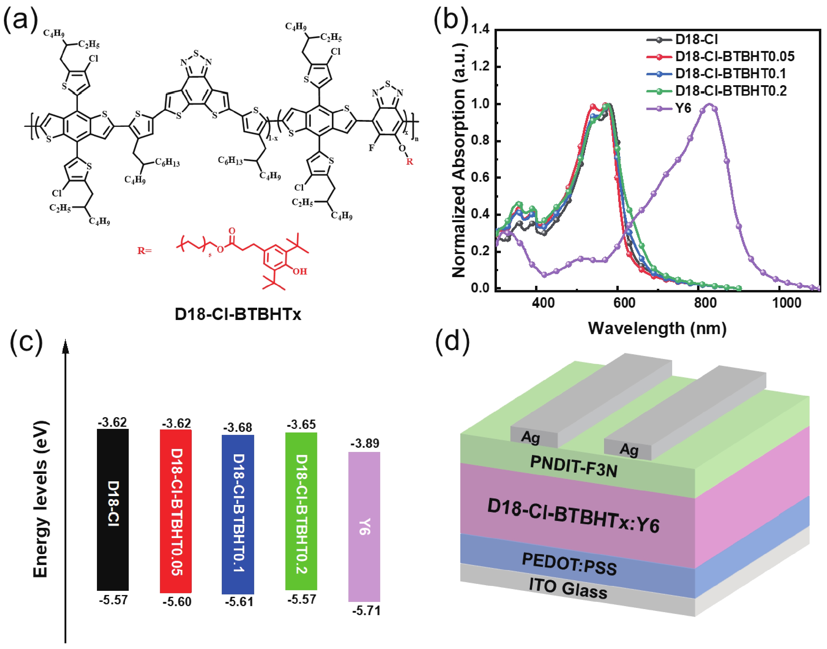 Table 1. Molecular weights, optical properties, and electronic energy levels of copolymers D18-Cl-BTBHTx (x = 0, 0.05, 0.1, 0.2).