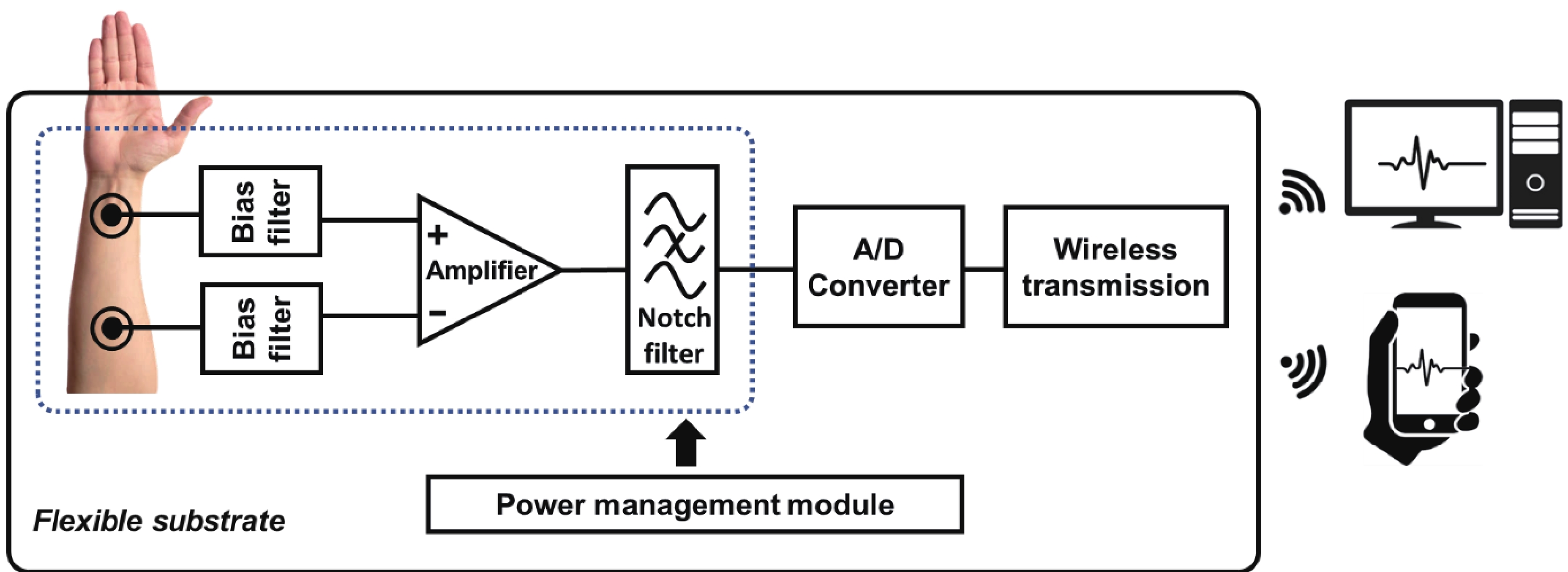 Fuketa H, Yoshioka K, Shinozuka Y, et al. 1μm-thickness 64-channel surface electromyogram measurement sheet with 2V organic transistors for prosthetic hand control. 2013 IEEE International Solid-State Circuits Conference Digest of Technical Papers, 2013, 104 doi: 10.1109/ISSCC.2013.6487656