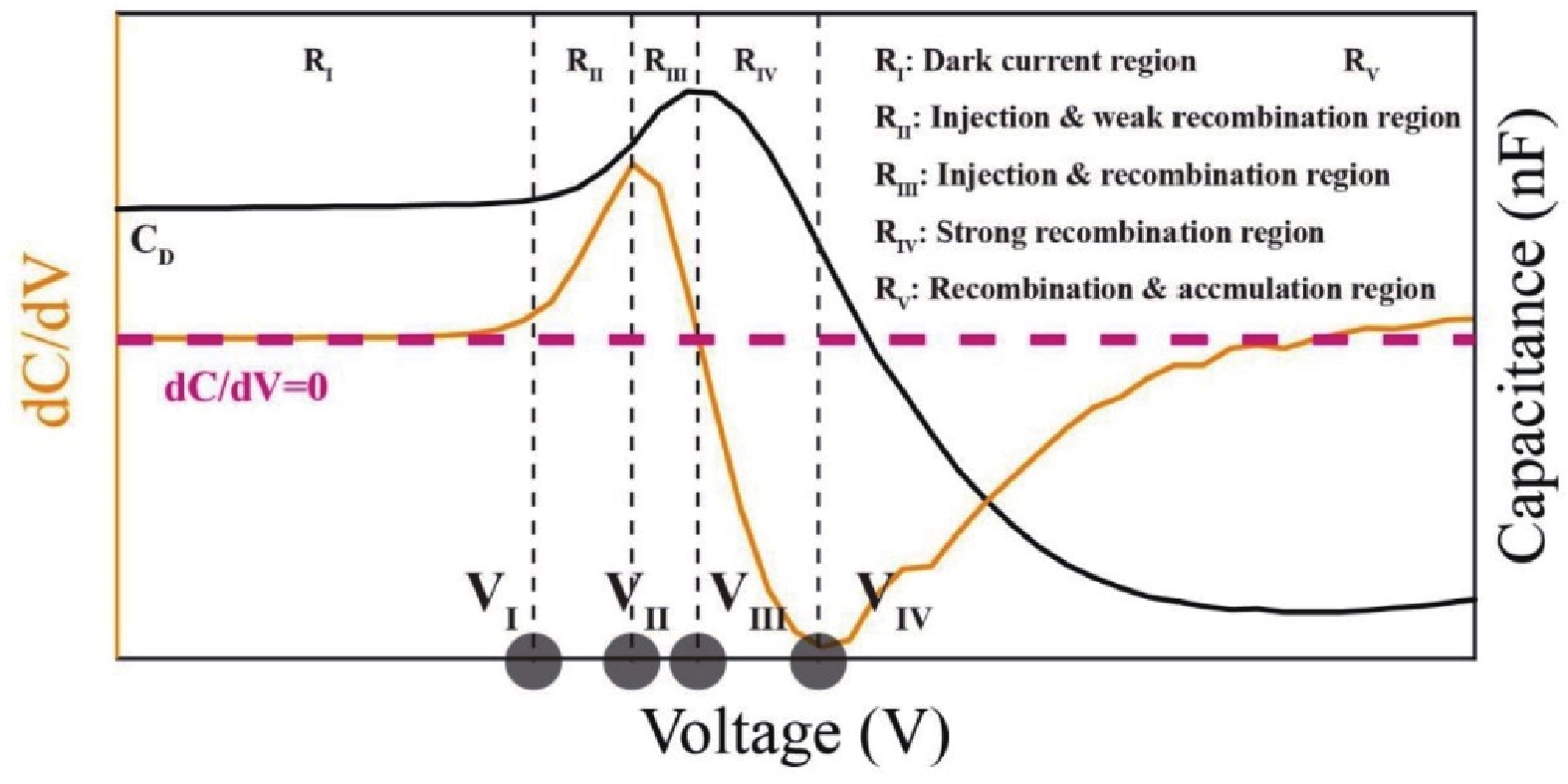 | C?V characteristic | Charge injection point, charge injection and recombination rate. | The frequency is required to satisfy the charge response to the alternating signal. |