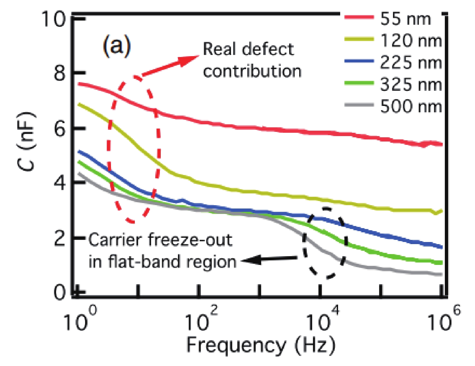 | C?f characteristic | The characteristic time constant for charge accumulation and recombination; trap distribution. | The capacitance rise is only contributed to the carrier trapping for the defect spectroscopy. |