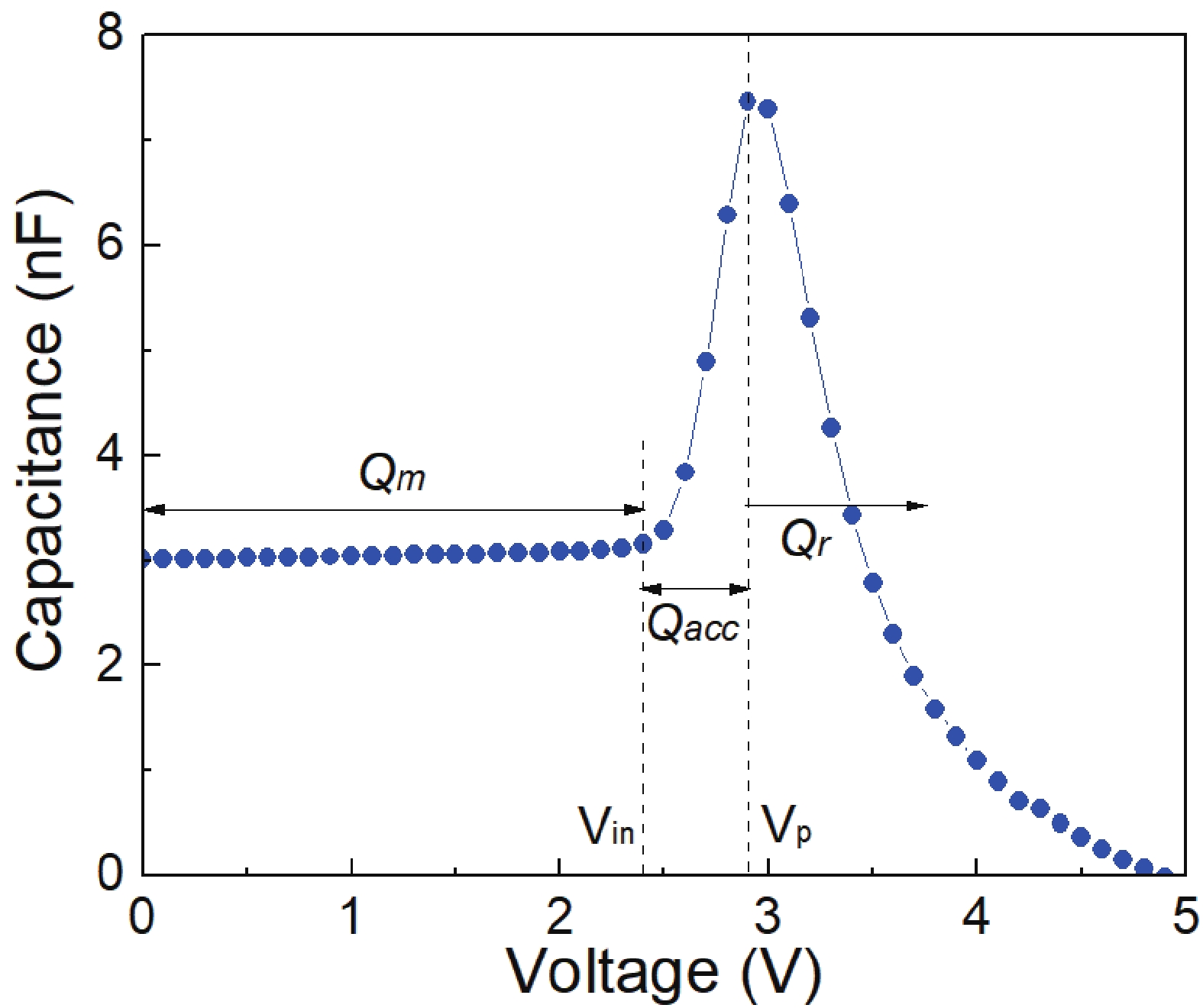 | Mott?Schottky analysis (1/C2?V characteristic) | Doping density, built-in voltage | Depletion approximation must be satisfied in a device. |