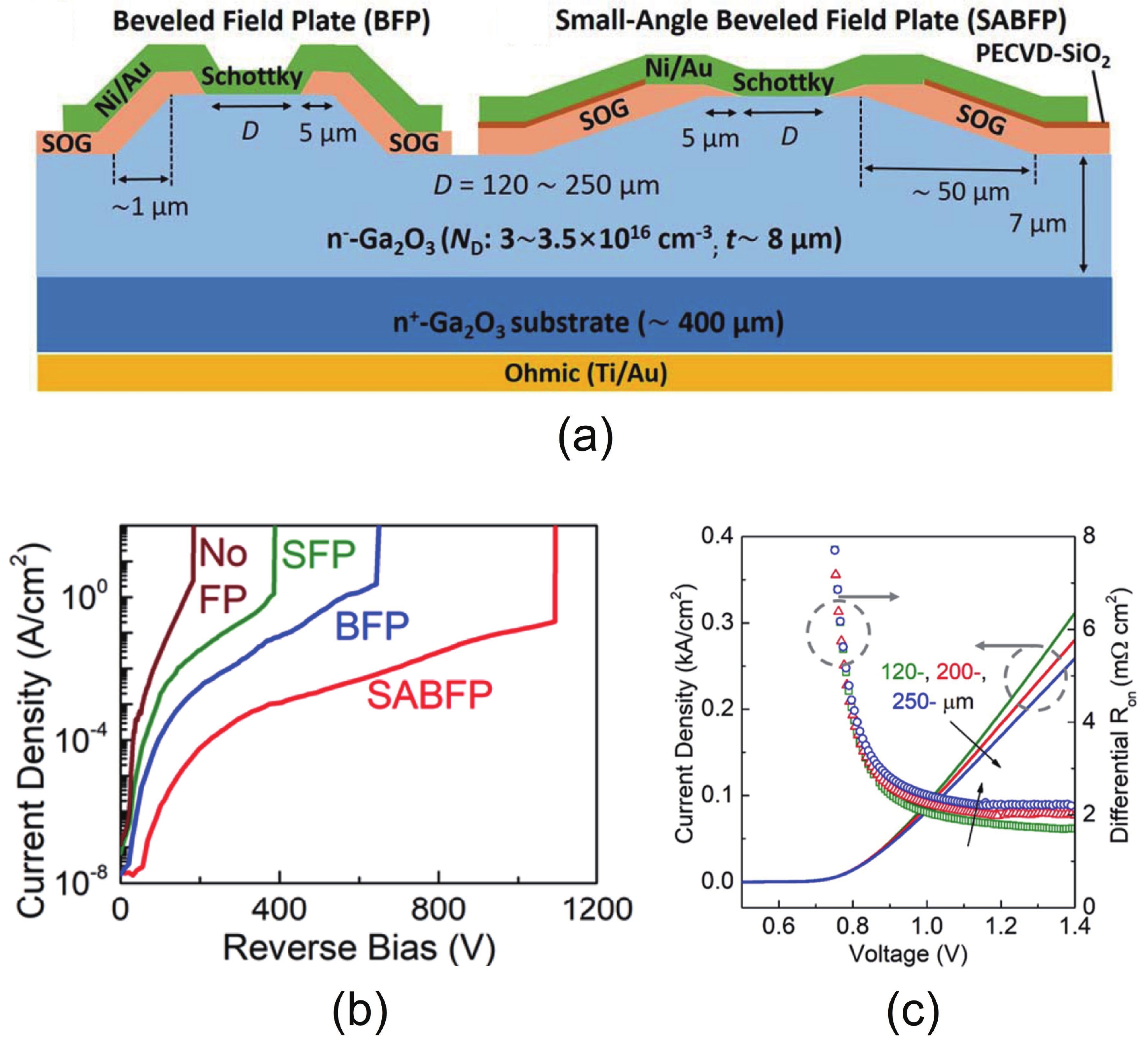 Allen N, Xiao M, Yan X D, et al. Vertical Ga2O3 Schottky barrier diodes with small-angle beveled field plates: A Baliga’s figure-of-merit of 0.6 GW/cm2. IEEE Electron Device Lett, 2019, 40, 1399 doi: 10.1109/LED.2019.2931697