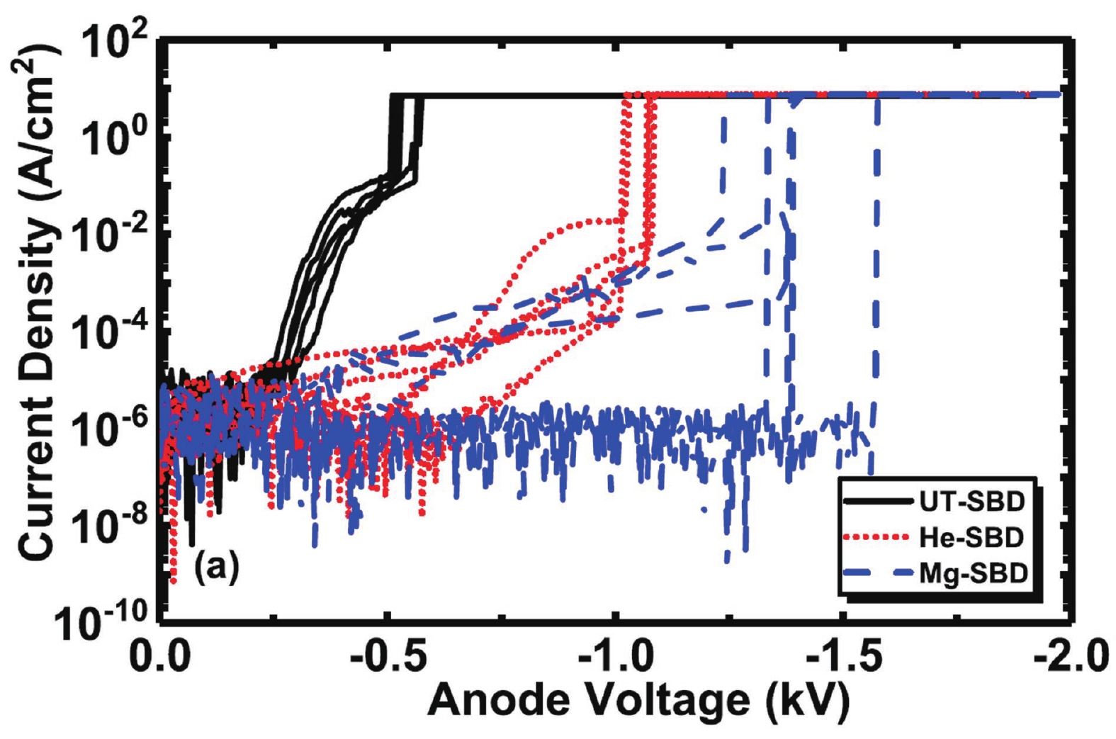 Abstract: β-Ga2O3 Schottky barrier diodes have undergone rapid progress in research and development for power electronic applications. This paper reviews state-of-the-art β-Ga2O3 rectifier technologies, including advanced diode architectures that have enabled lower reverse leakage current via the reduced-surface-field effect. Characteristic device properties including on-resistance, breakdown voltage, rectification ratio, dynamic switching, and nonideal effects are summarized for the different devices. Notable results on the high-temperature resilience of β-Ga2O3 Schottky diodes, together with the enabling thermal packaging solutions, are also presented.