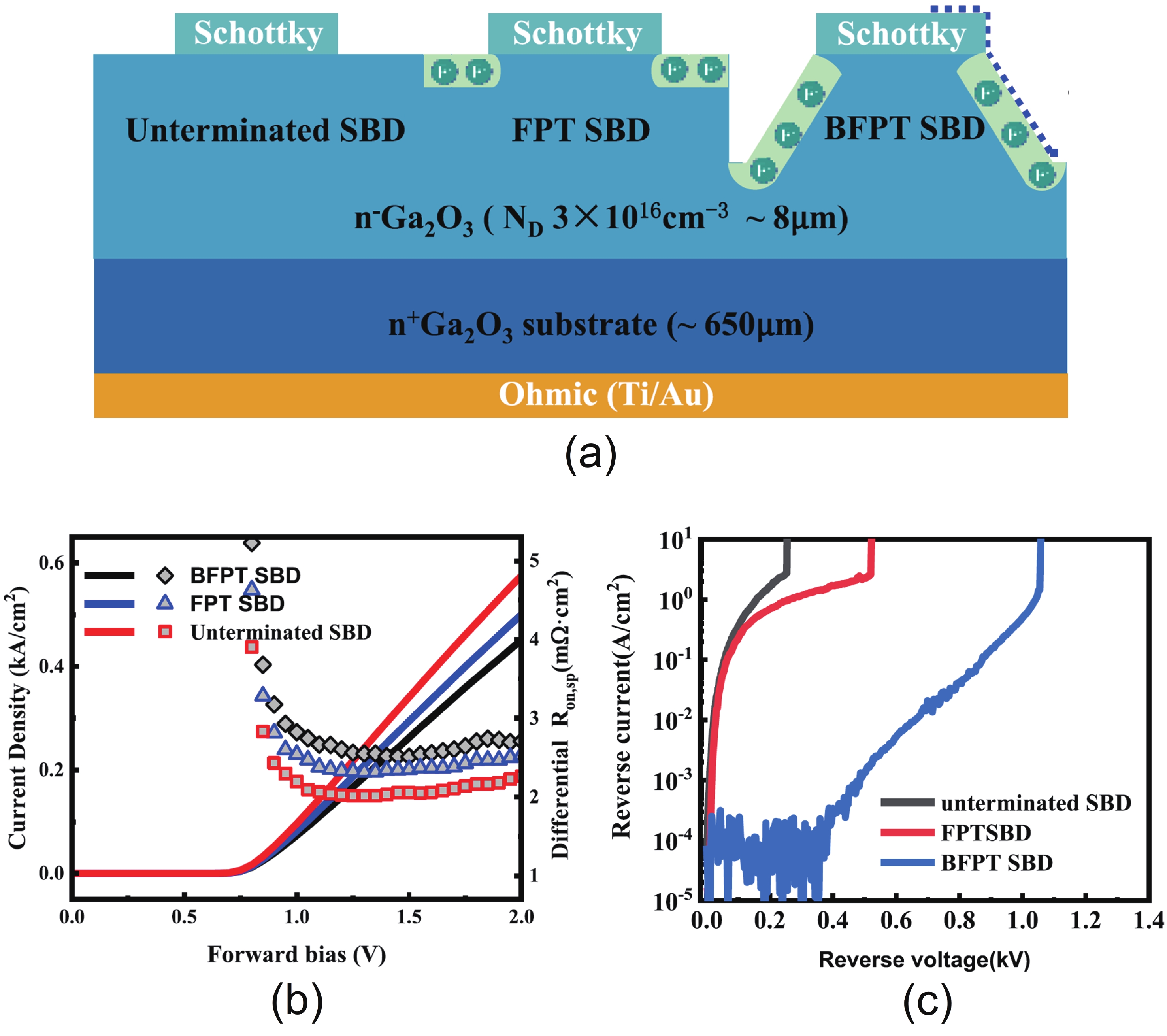 Gong H H, Zhou F, Yu X X, et al. 70-μm-body Ga2O3 Schottky barrier diode with 1.48 K/W thermal resistance, 59 A surge current and 98.9% conversion efficiency. IEEE Electron Device Lett, 2022, 43, 773 doi: 10.1109/LED.2022.3162393