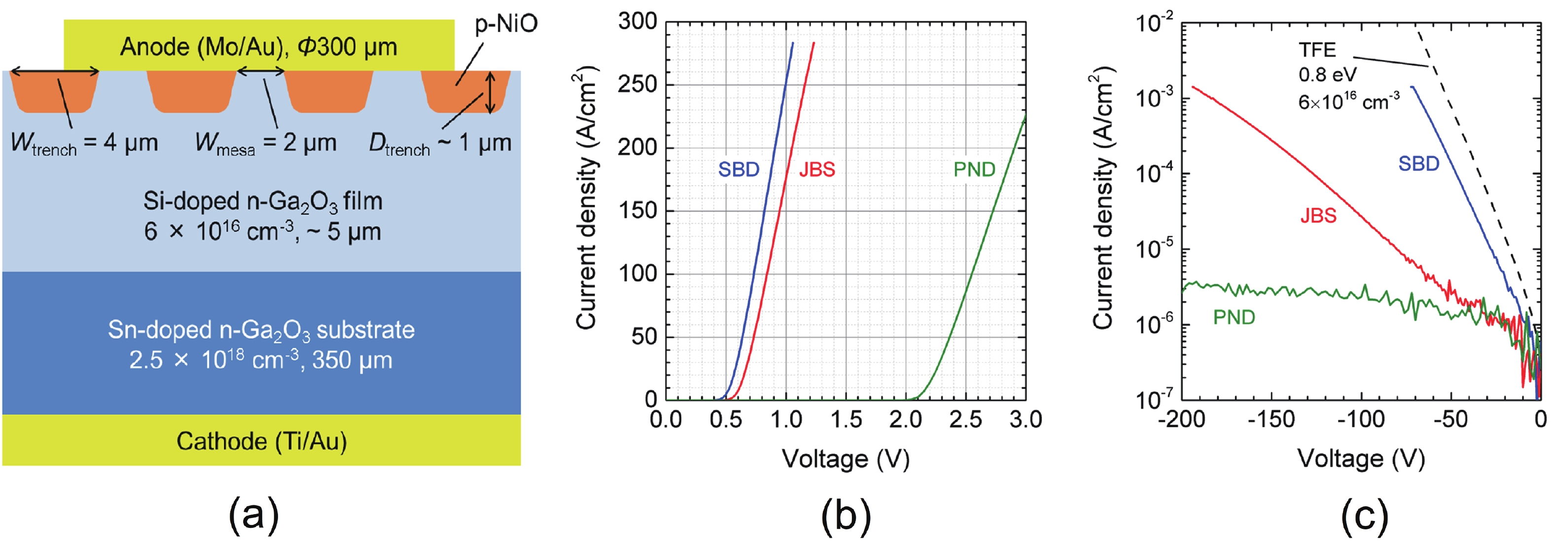 Wilhelmi F, Kunori S, Sasaki K, et al. Packaged β-Ga2O3 trench MOS Schottky diode with nearly ideal junction properties. IEEE Trans Power Electron, 2022, 37, 3737 doi: 10.1109/TPEL.2021.3122902