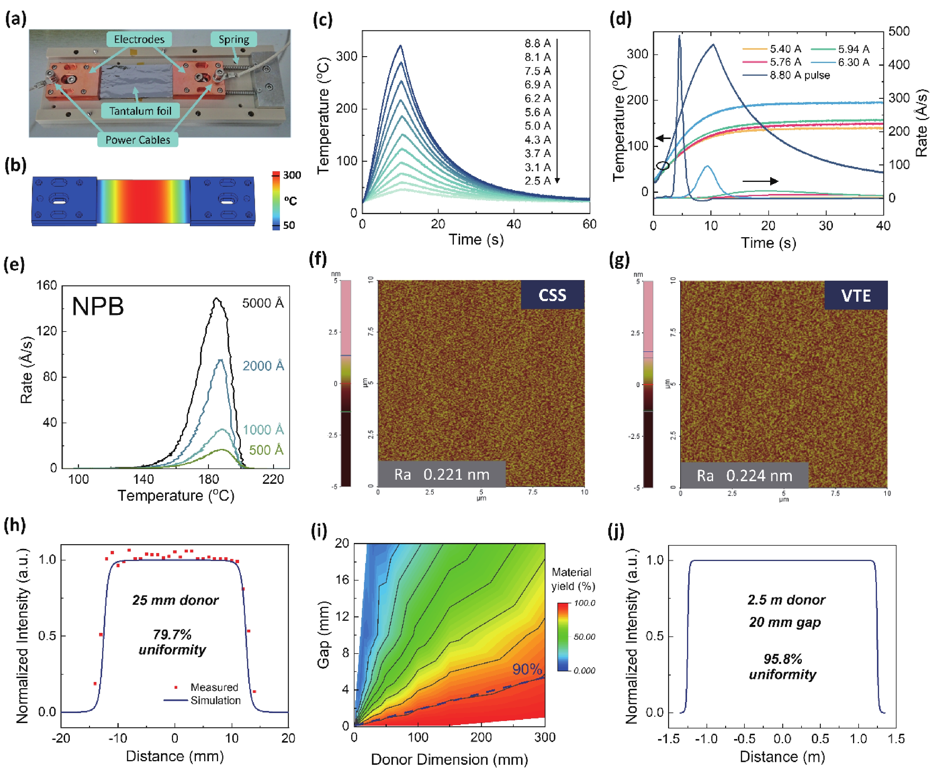 Table 1. Peak temperatures and evaporation rates in CSS at different currents.