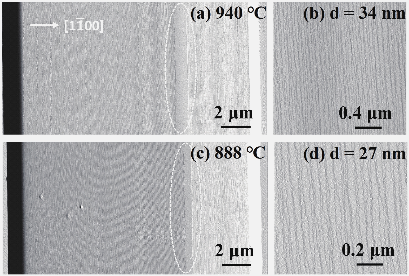 Abstract: A new kind of step-flow growth mode is proposed, which adopts sidewall as step source on patterned GaN substrate. The terrace width of steps originated from the sidewall was found to change with the growth temperature and ammonia flux. The growth mechanism is explained and simulated based on step motion model. This work helps better understand the behaviors of step advancement and puts forward a method of precisely modulating atomic steps.
