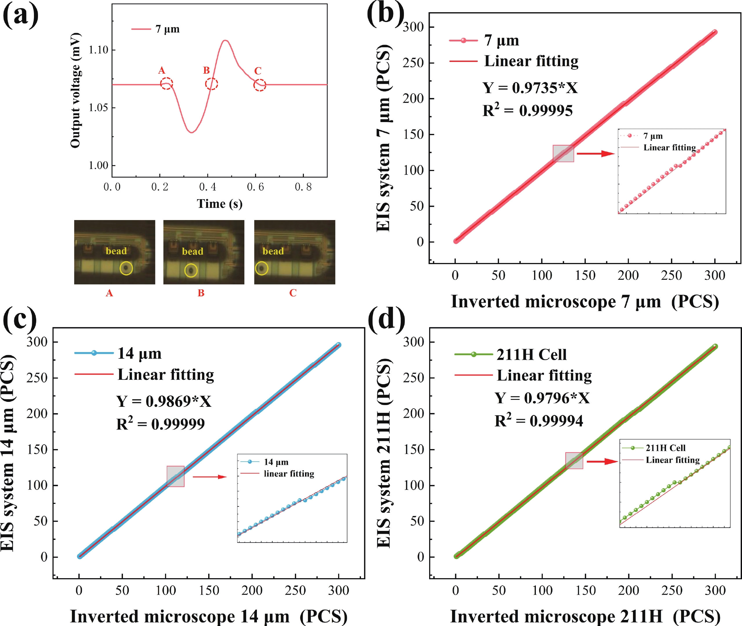 | Liu et al. (2023) | Lock-in amplifier | Thermal bubble micropump | 100 | 38 mm2 | MSTO-211H | 0.999 | 45 000 cells/s | [20] |